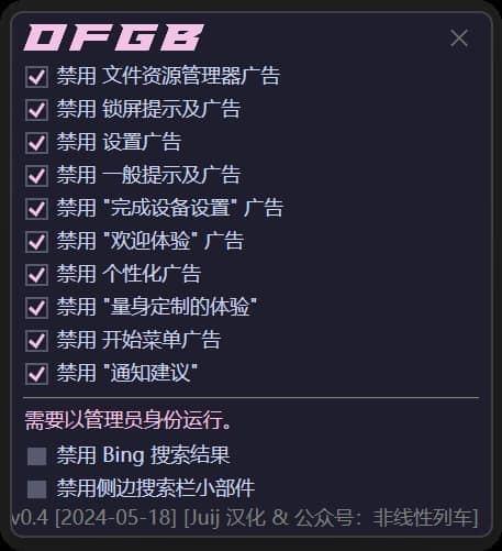 # OFGB (Oh Frick Go Back) - 禁用 Windows 11 系统广告 [Juij 汉化] [持续更新]